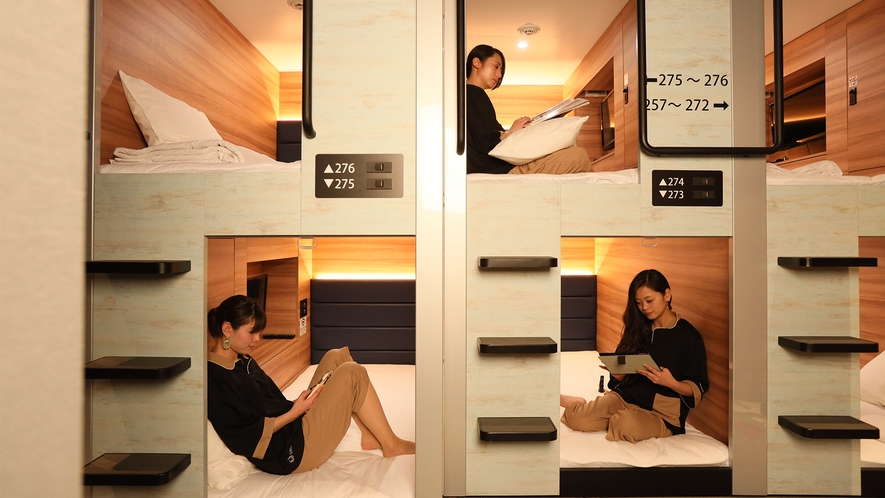 大浴場・サウナ・女性専用フロア完備で快適に過ごせるスマートカプセル宿!